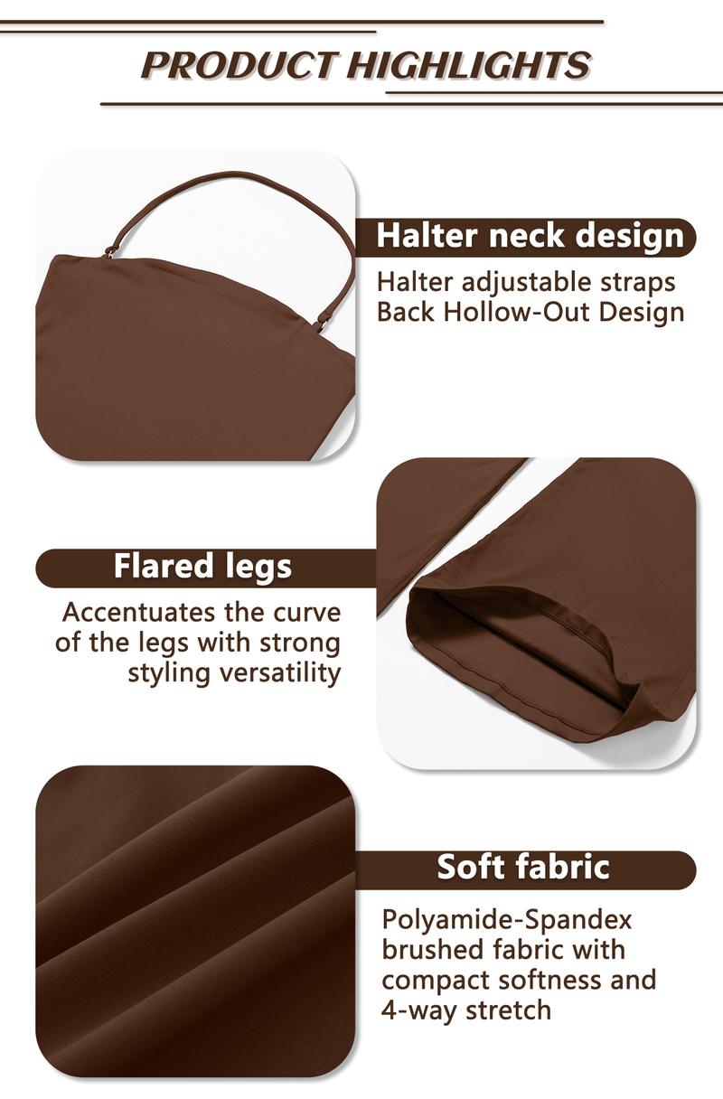 The high-waist design provides excellent tummy control and elevates your waistline, creating an elongated leg-lengthening effect. It enhances your overall look. The flared leg cut adds a retro-chic vibe, offering a fashionable twist. It allows free movement, perfect for workouts and stylish outings.